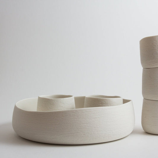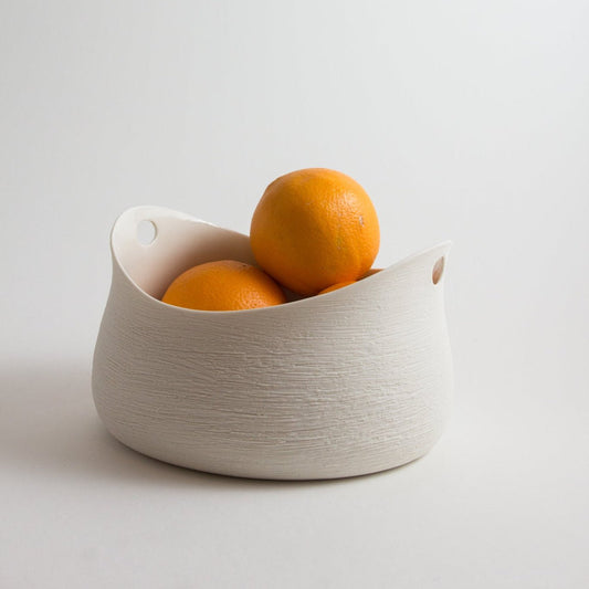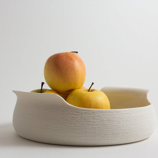 White porcelain bowl with signature - Handcrafted and textured design - L'ATELIER BERANGERE CERAMIQUE