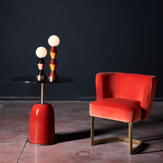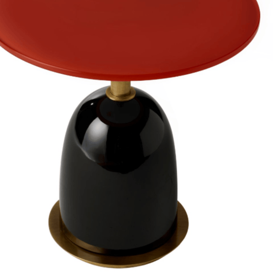 Pins side table – Black glass, red ceramic & brass - MARIONI