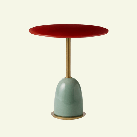 Pin's side table – Celadon green ceramic & red top - MARIONI