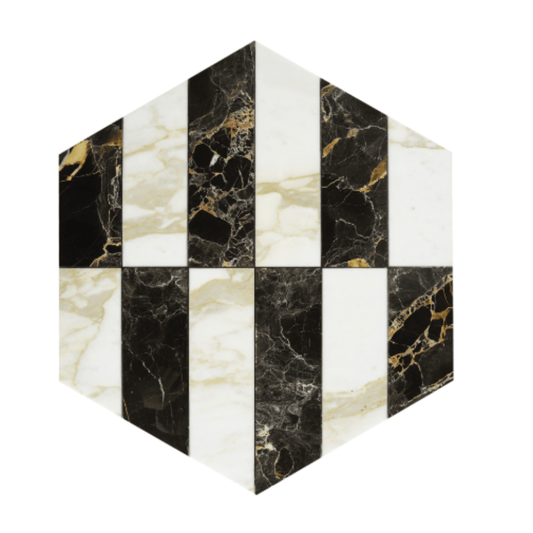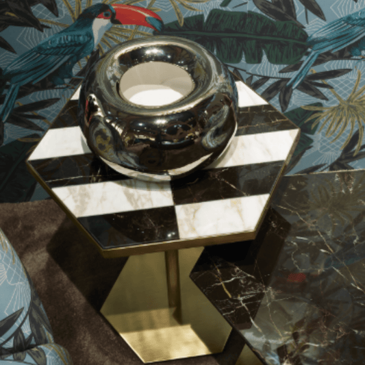 Ted side table – Black & white marble checkerboard, brushed brass – MARIONI