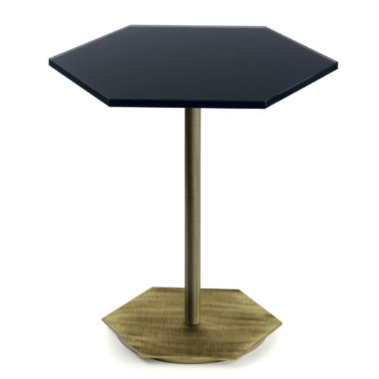 Pin's Side Table – Black Glass, Ceramic & Brass – MARIONI