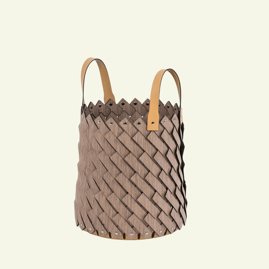 Sestriere low basket in Canaletto walnut and recycled leather - PINETTI
