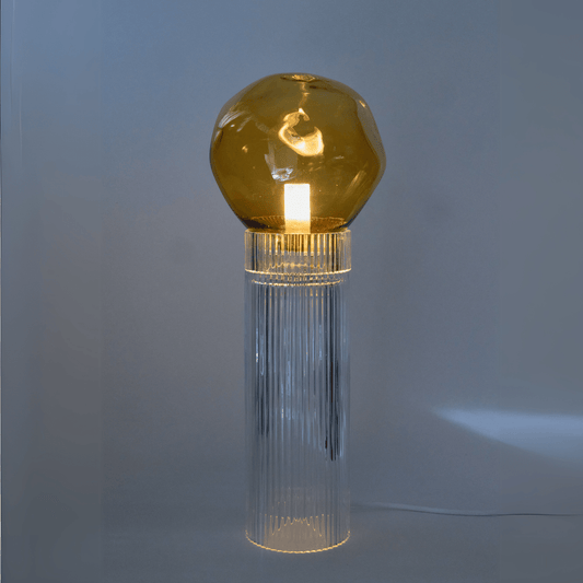 Nina lamp in hand-blown and engraved amber crystal - STUDIO BOJOLA