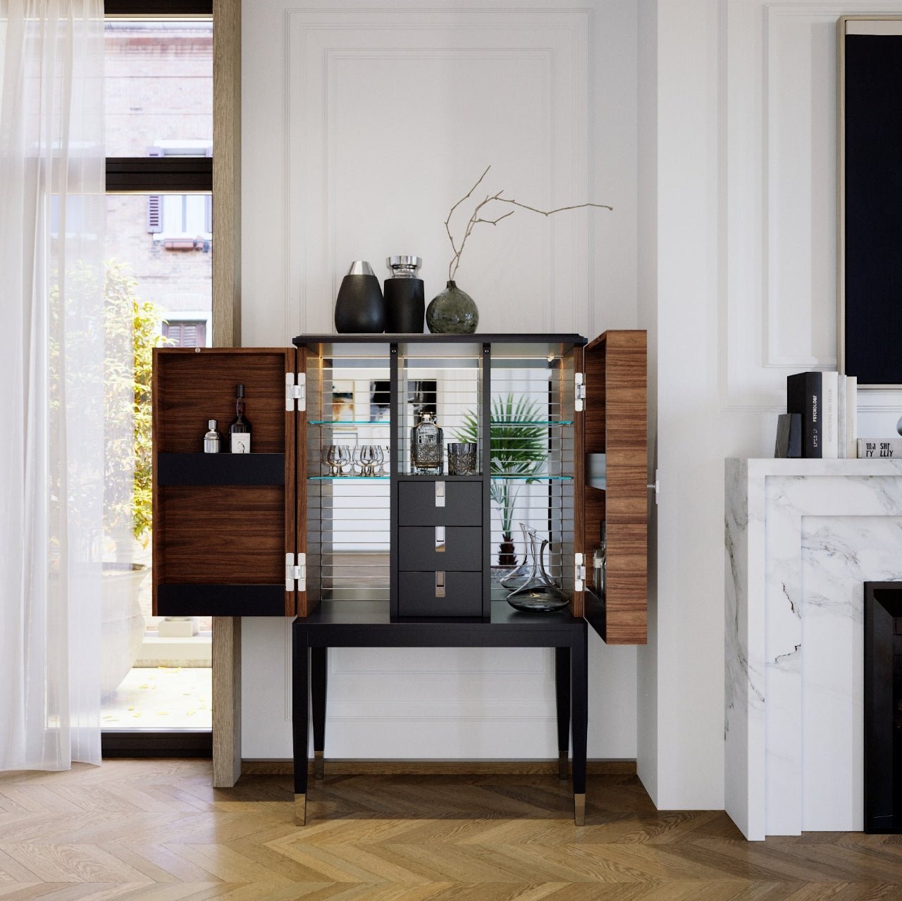 Behind its refined lines, it reveals a generous interior designed to accommodate glasses, carafes, spirits and mixology accessories with millimeter precision.