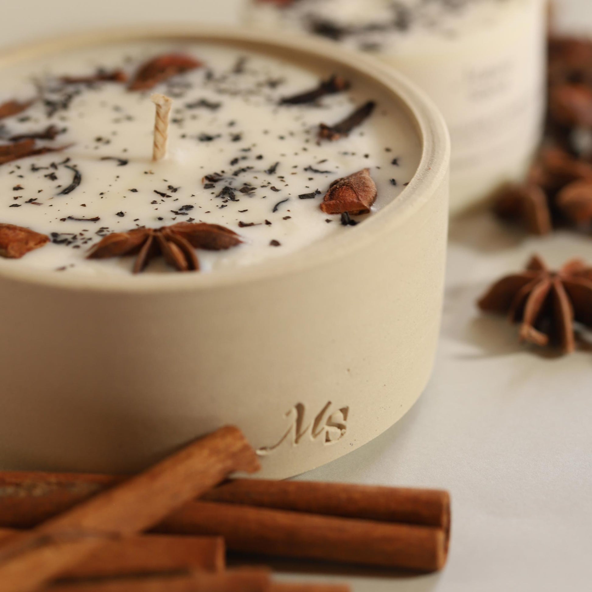 Stoneware Flower Candle – Tea & Gingerbread - MAISON SEJOUR