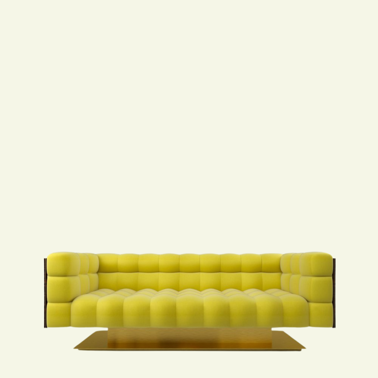 Resting on adiscreet brushed metal base, this sofa is both stable, visually light and incredibly refined. Itscoating is fully customizable, among a palette ofsumptuous velvet, genuine leathersOrtextured fabricsto match all your decorative desires.