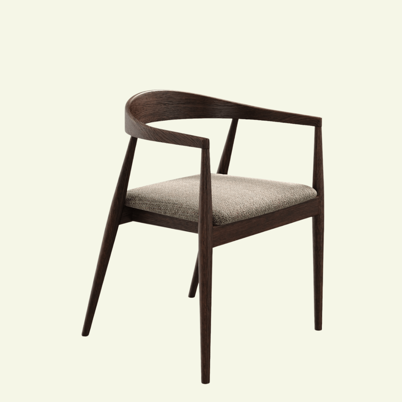 With its Japanese-inspired design, the YOKO chair combines understated elegance with refined comfort. Its solid walnut wood frame adds a touch of natural warmth, while the padded seat, upholstered in a textured, mottled beige fabric with subtle gray highlights, adds character to the ensemble. Perfect in a dining room, around a convivial table, or in an office space, YOKO combines timeless aesthetics with everyday comfort.