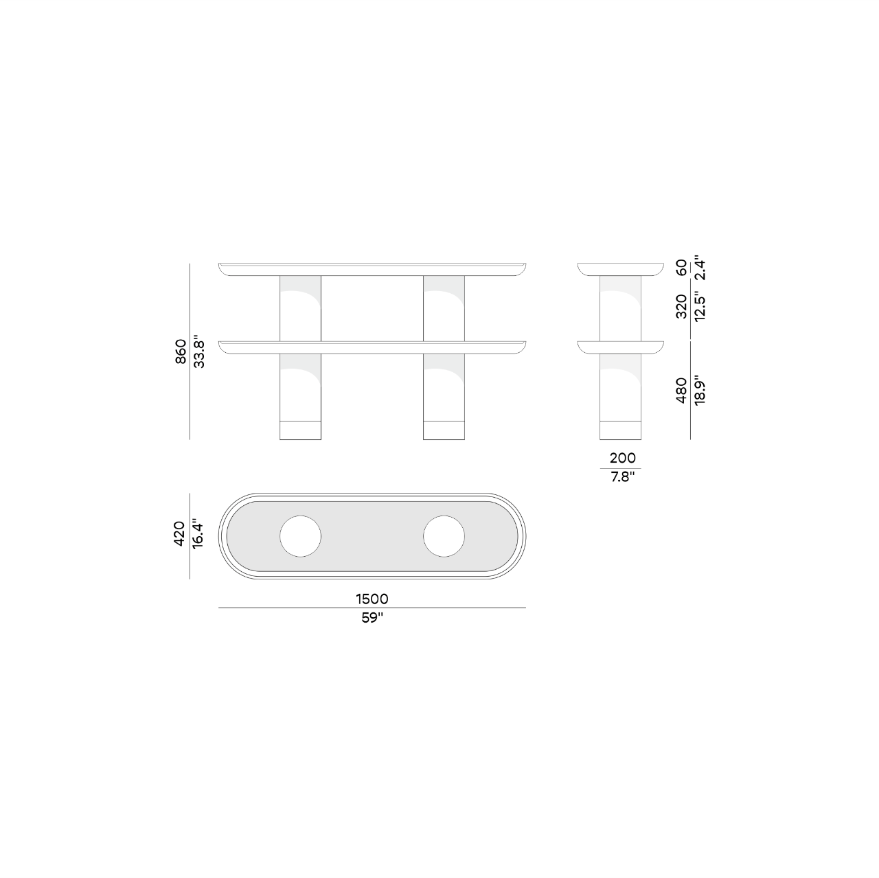 Arrange the consoleMINA 2under a vertical mirror or an abstract work. Add a thin lamp or a minimalist floral arrangement: it then becomes the element that punctuates the entrance while remaining airy and discreet.