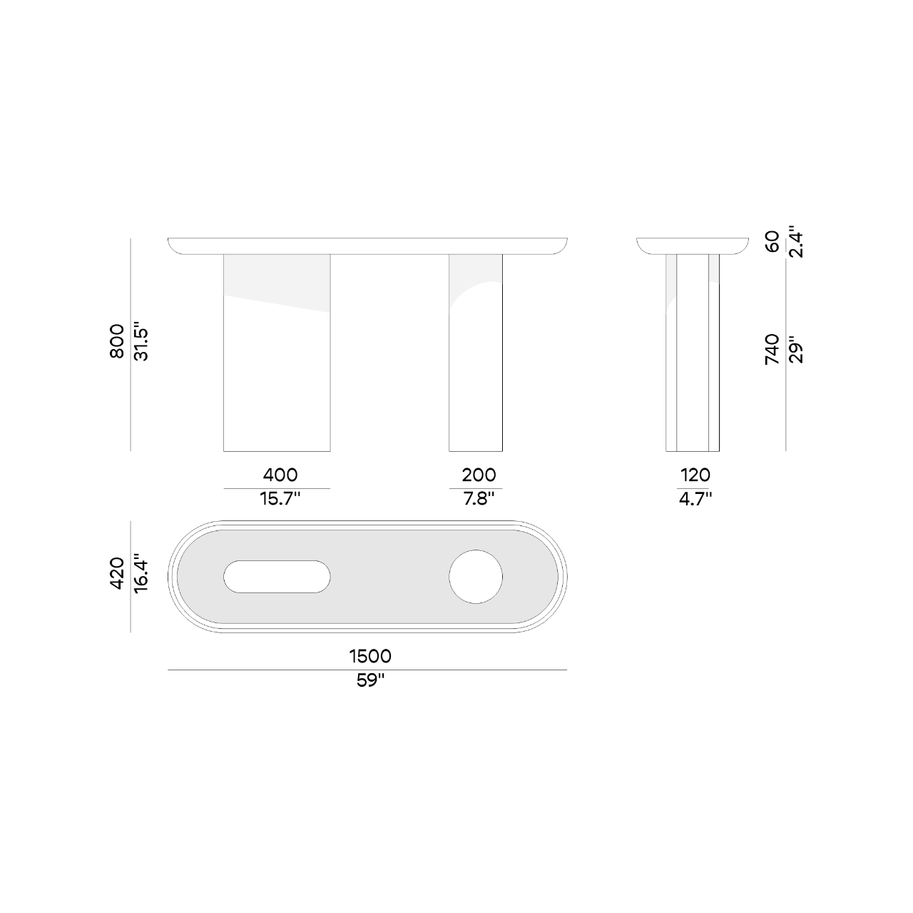 The CRETA console combines the refinement of Italian design with the nobility of materials. Its oval top in glossy or matte lacquer accommodates a delicate insert in marble, wood, or dichroic mirror, creating a sculptural piece that is both contemporary and timeless.