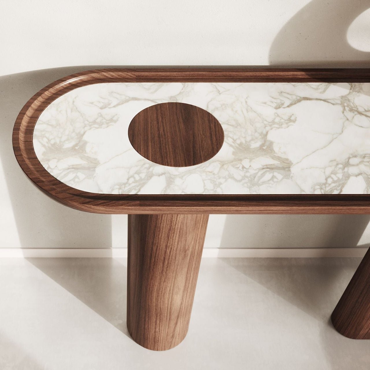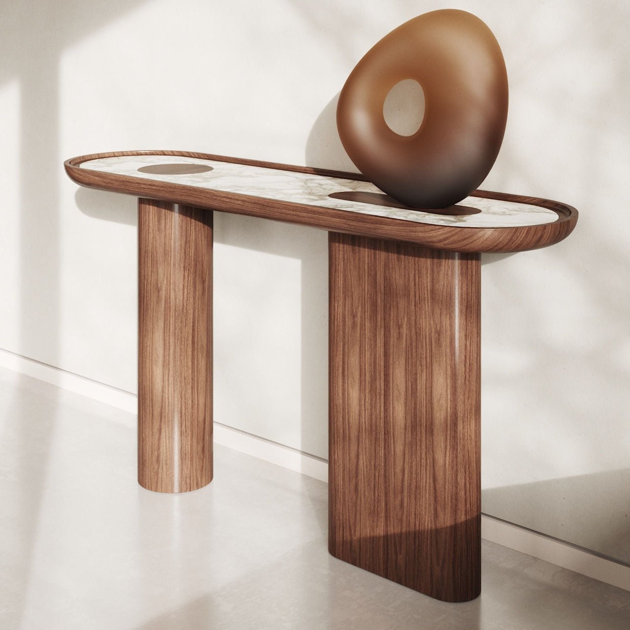 Oval console in walnut and CRETA marble – ULTRA MOBILI