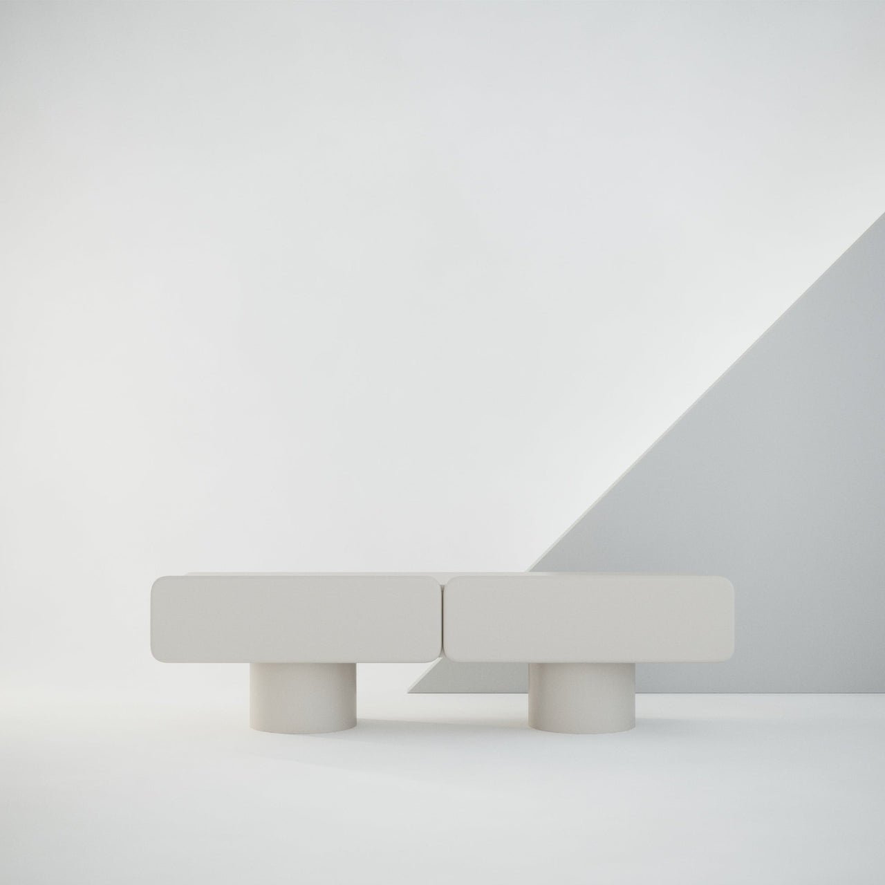 Its compact size fitscontemporary living spaces: entrance, living room, bedroom or office. The geometric metal base visually elevates the furniture, while the front, without visible handles, reinforces its sculptural and refined look.