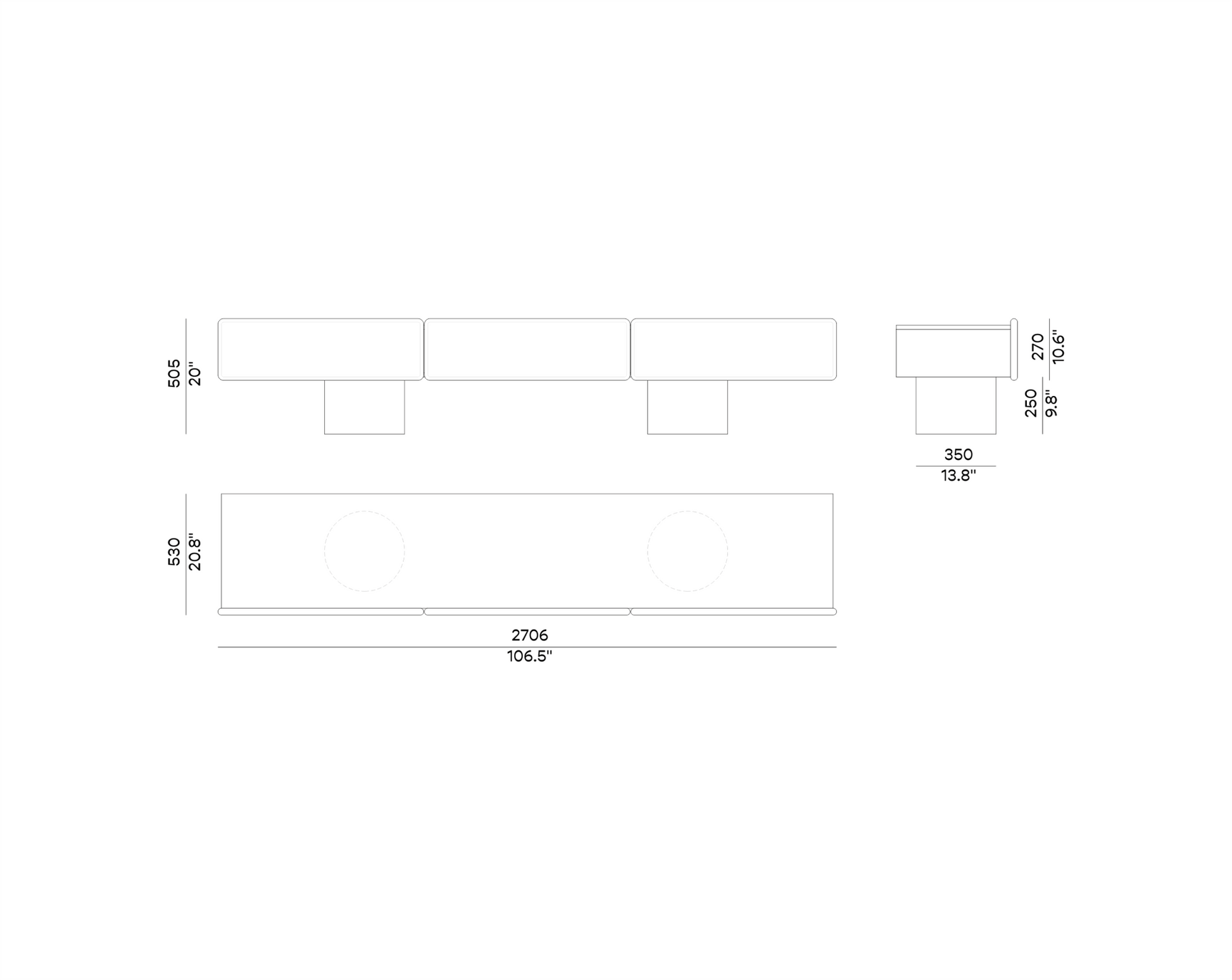 Dimensions: 270x53xH51cm