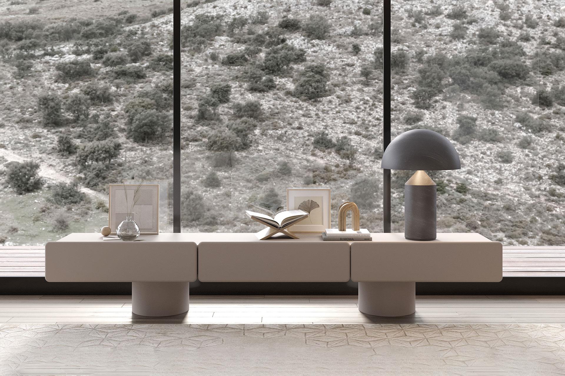 Highlight the MARTE 3 against a colored wall (khaki, aubergine or terracotta) and add a table lamp in raw ceramic or marble: it becomes a central piece, betweenoccasional furniture and contemporary sculpture.