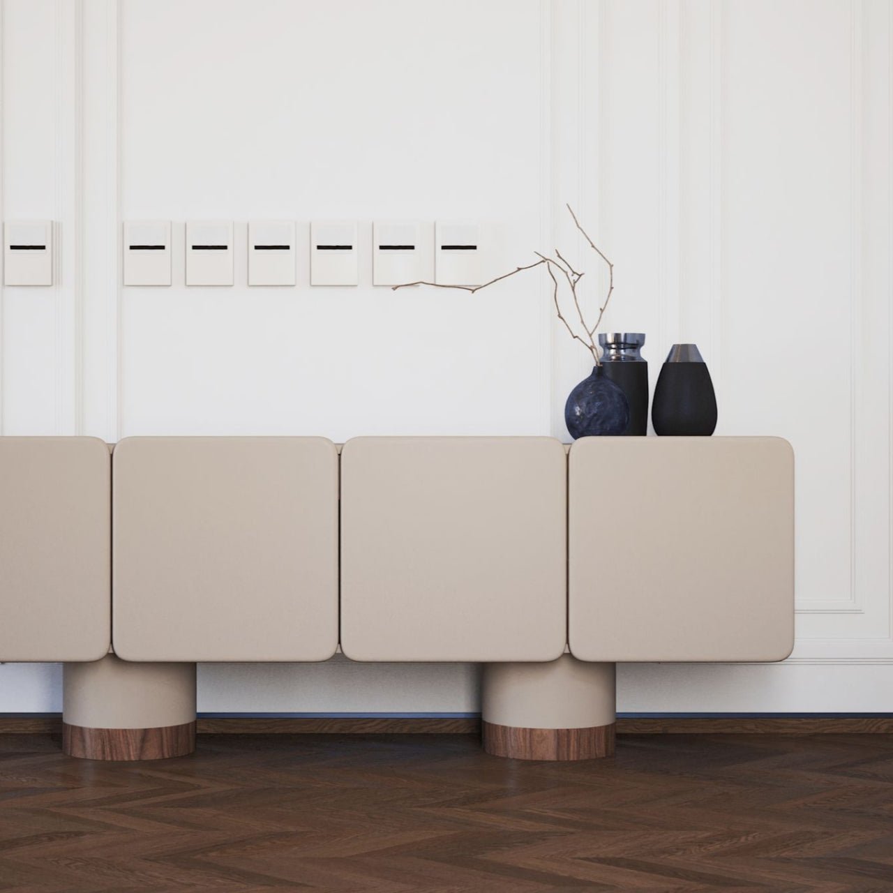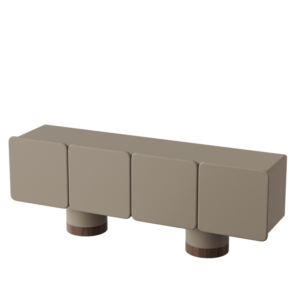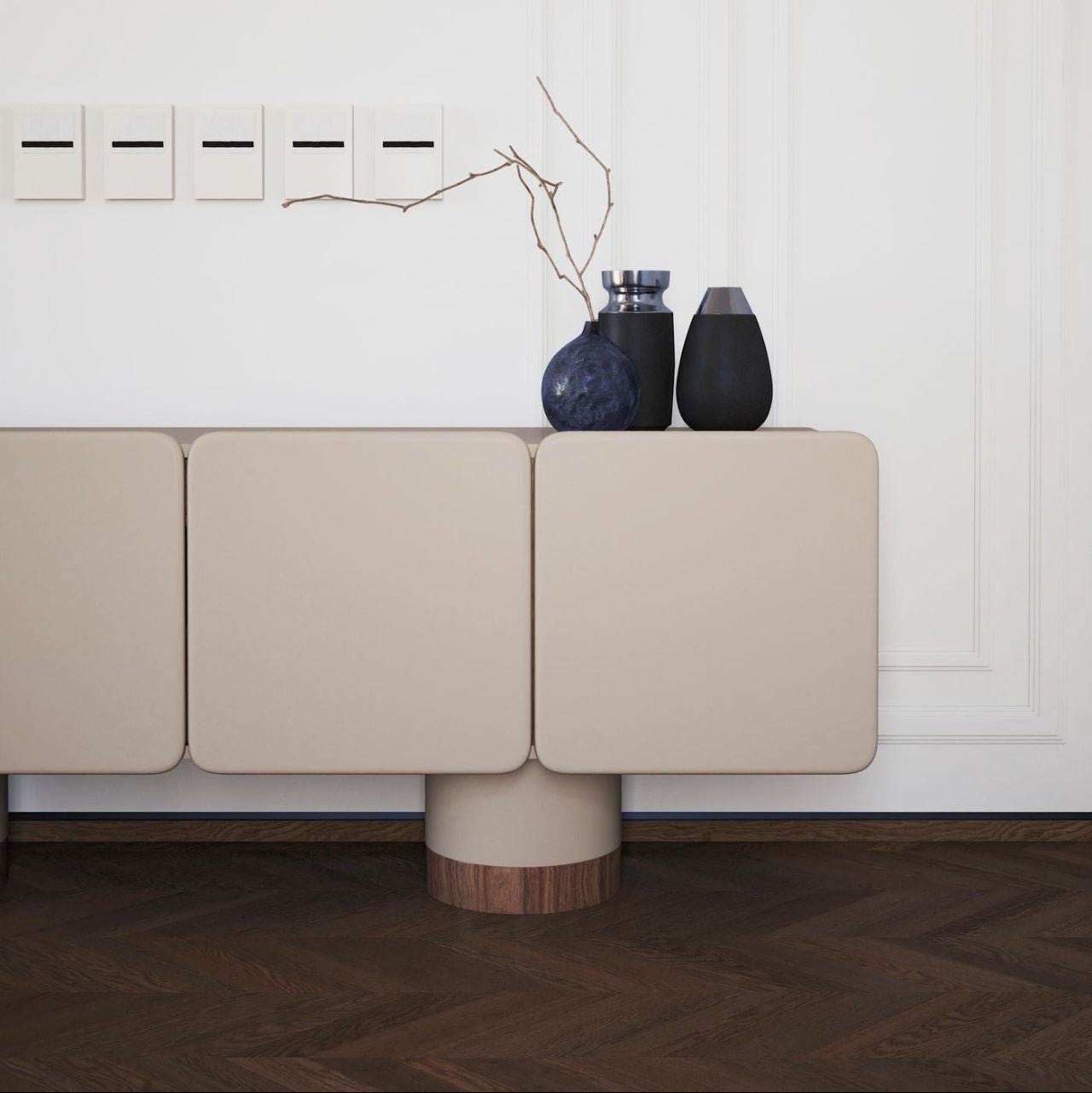 THEVENUS furnituresignULTRAMOBILIis much more than a sideboard: it is a functional sculpture, at once graphic, sensual and perfectly balanced. Composed of four modules with softened corners, placed on marked cylindrical legs, it attracts the eye byhis play of volumesand the richness of itsmaterials.
