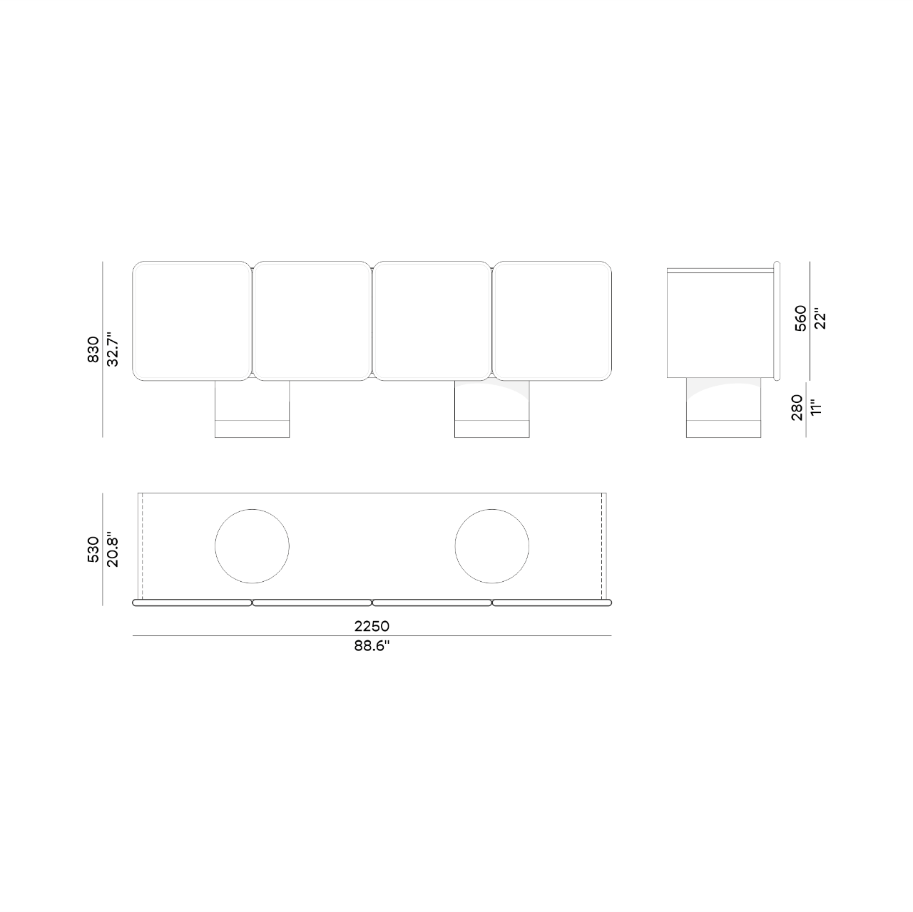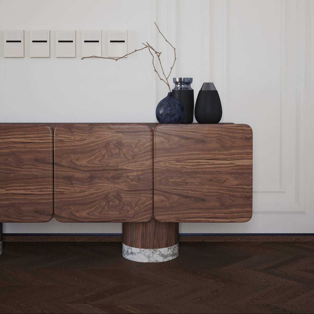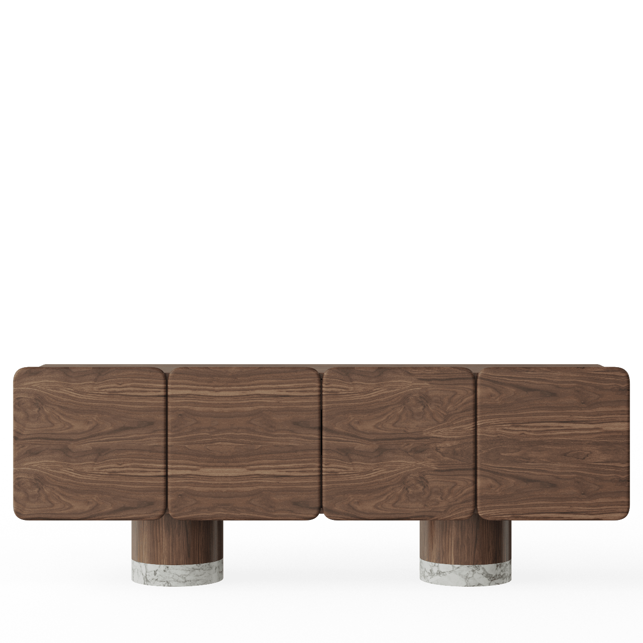 THEVENUS furnituresignULTRAMOBILIis much more than a sideboard: it is a functional sculpture, at once graphic, sensual and perfectly balanced. Composed of four modules with softened corners, placed on marked cylindrical legs, it attracts the eye byhis play of volumesand the richness of itsmaterials.