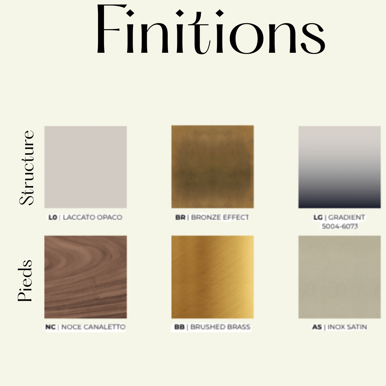 →Bottom of feetin natural walnut, for a warm and textured contrast - Hand-lacquered bronze finish