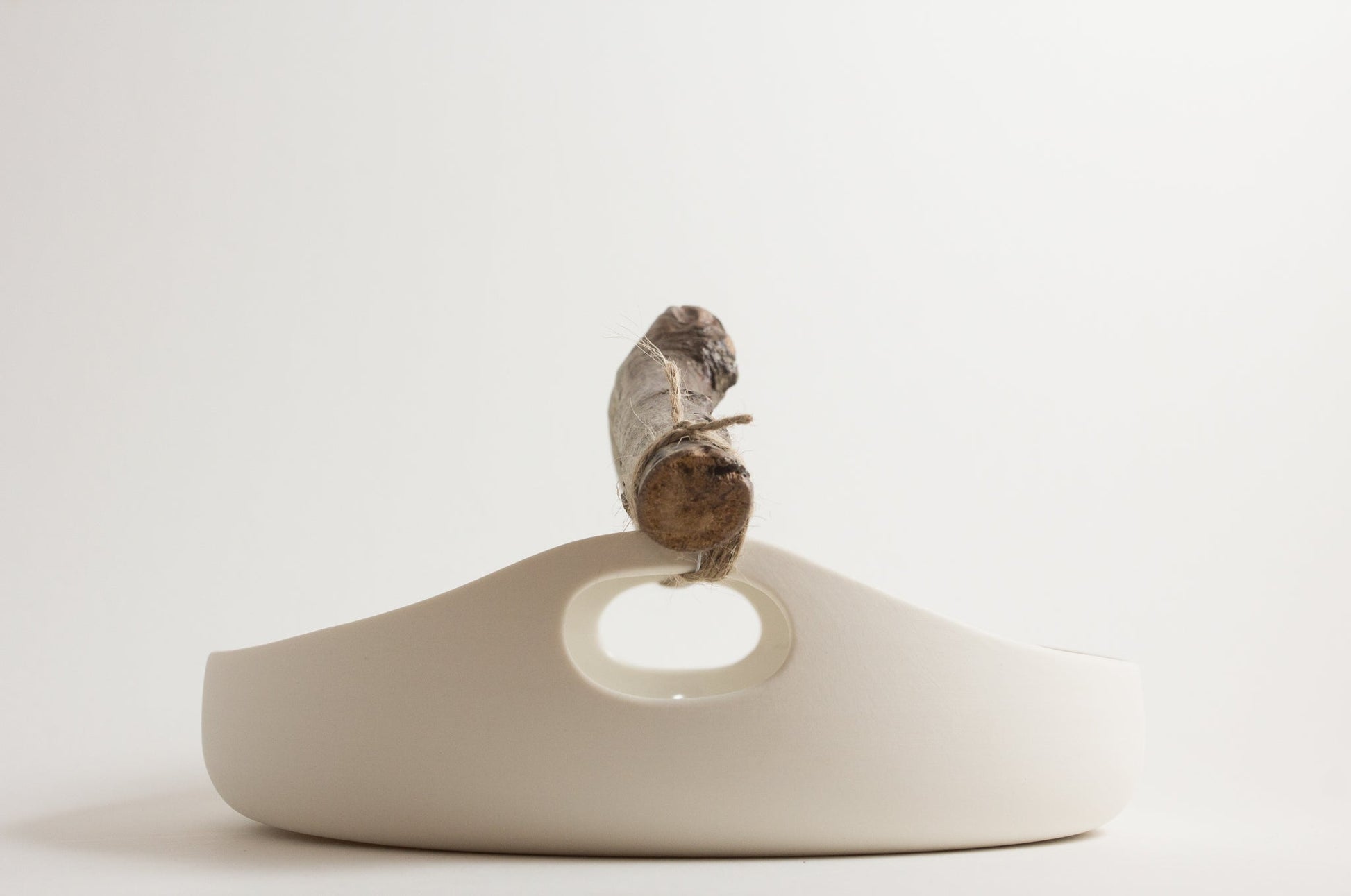 Thisround dish in smooth white porcelain, signThe Bérangère Ceramics Workshop, embodies a precious encounter betweencontemporary sobrietyAndraw element.