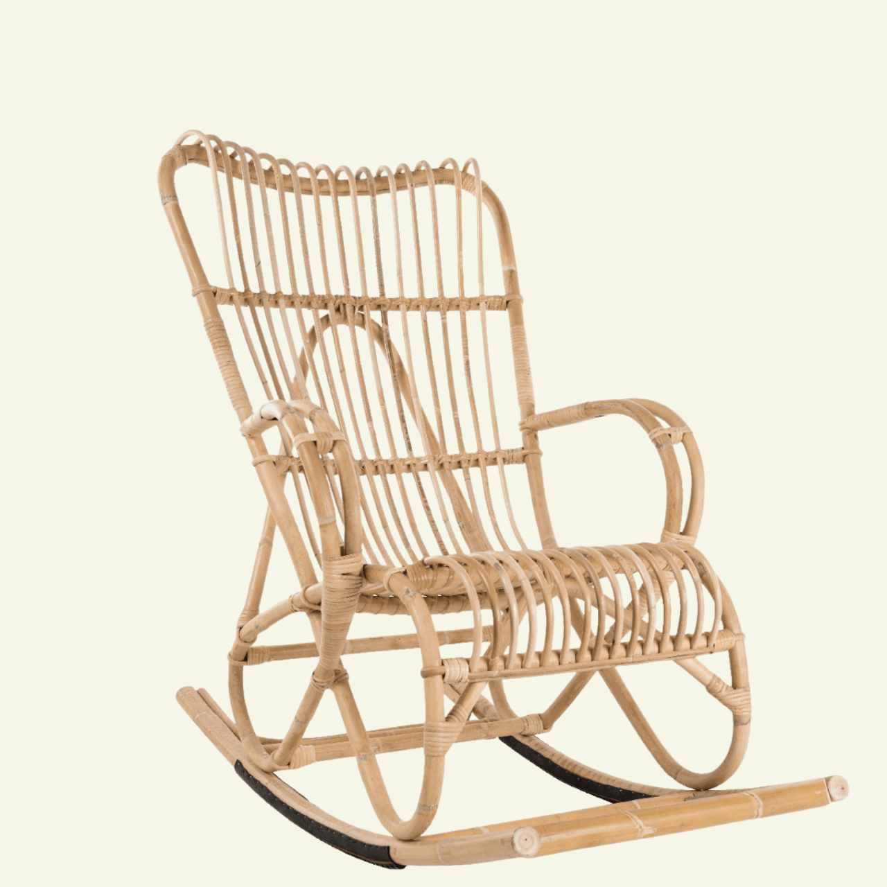 The Marlene rocking chair is an invitation to relax. With its 1960s-inspired silhouette and high, curved backrest, it combines absolute comfort with timeless charm. Handcrafted from heat-bent natural rattan, it showcases KOK's artisanal heritage while blending seamlessly into even the most contemporary interiors.