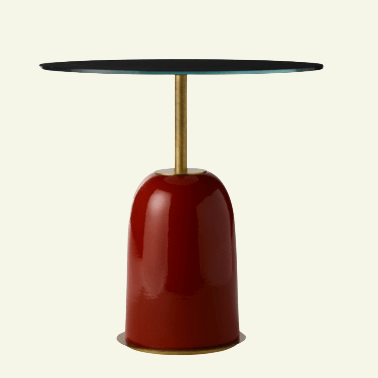 Pins side table – Black glass, red ceramic & brass - MARIONI
