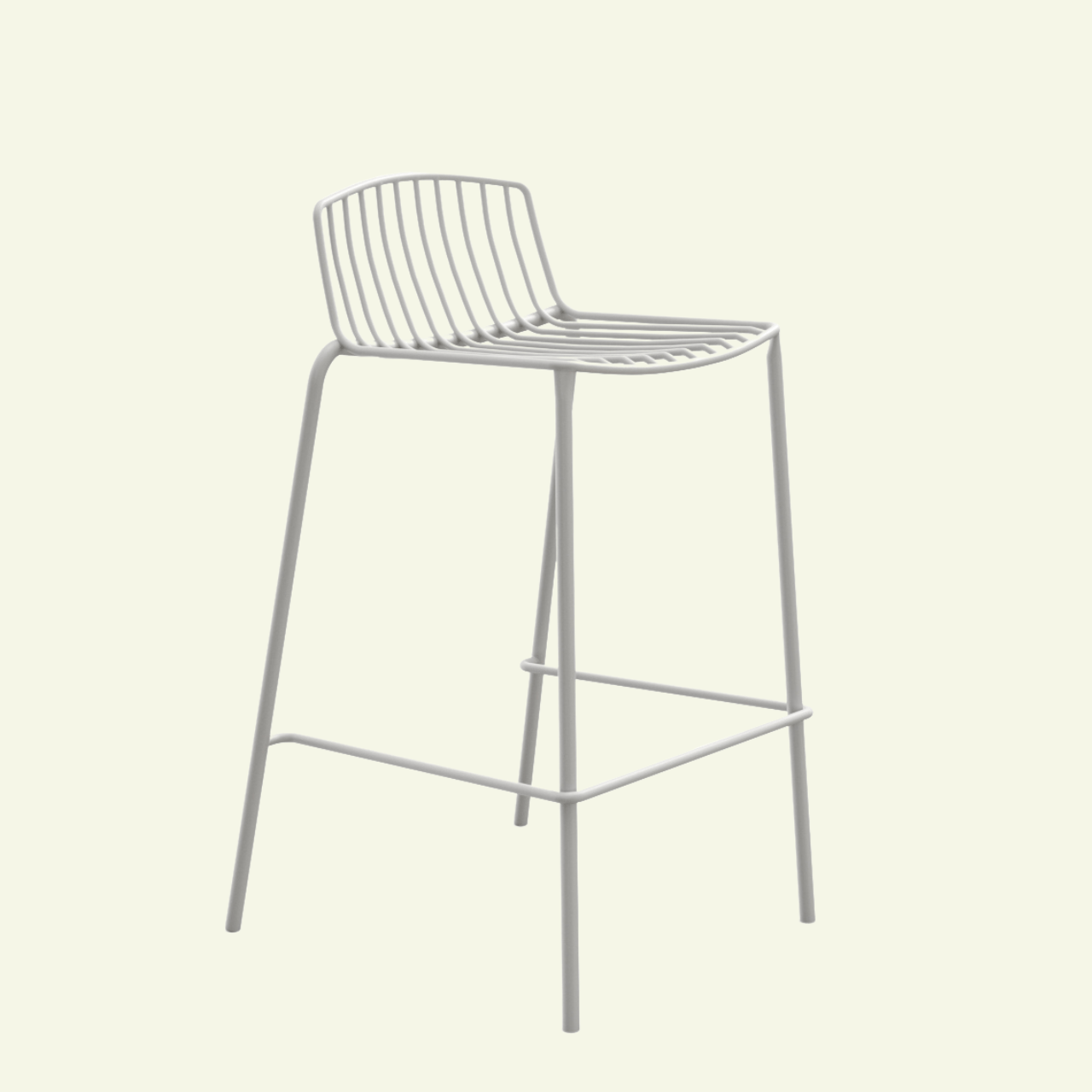 The RIGA stool reinvents classic metal furniture with bold style and impeccable construction. Available in two heights, it adapts to your countertops, kitchen islands, or high patio tables. Thanks to its powder-coated metal frame and airy design, it's as practical indoors as it is outdoors.